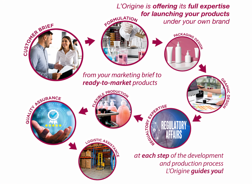 L’Origine ODM (Private labelling) arrangement provides a 360° support from